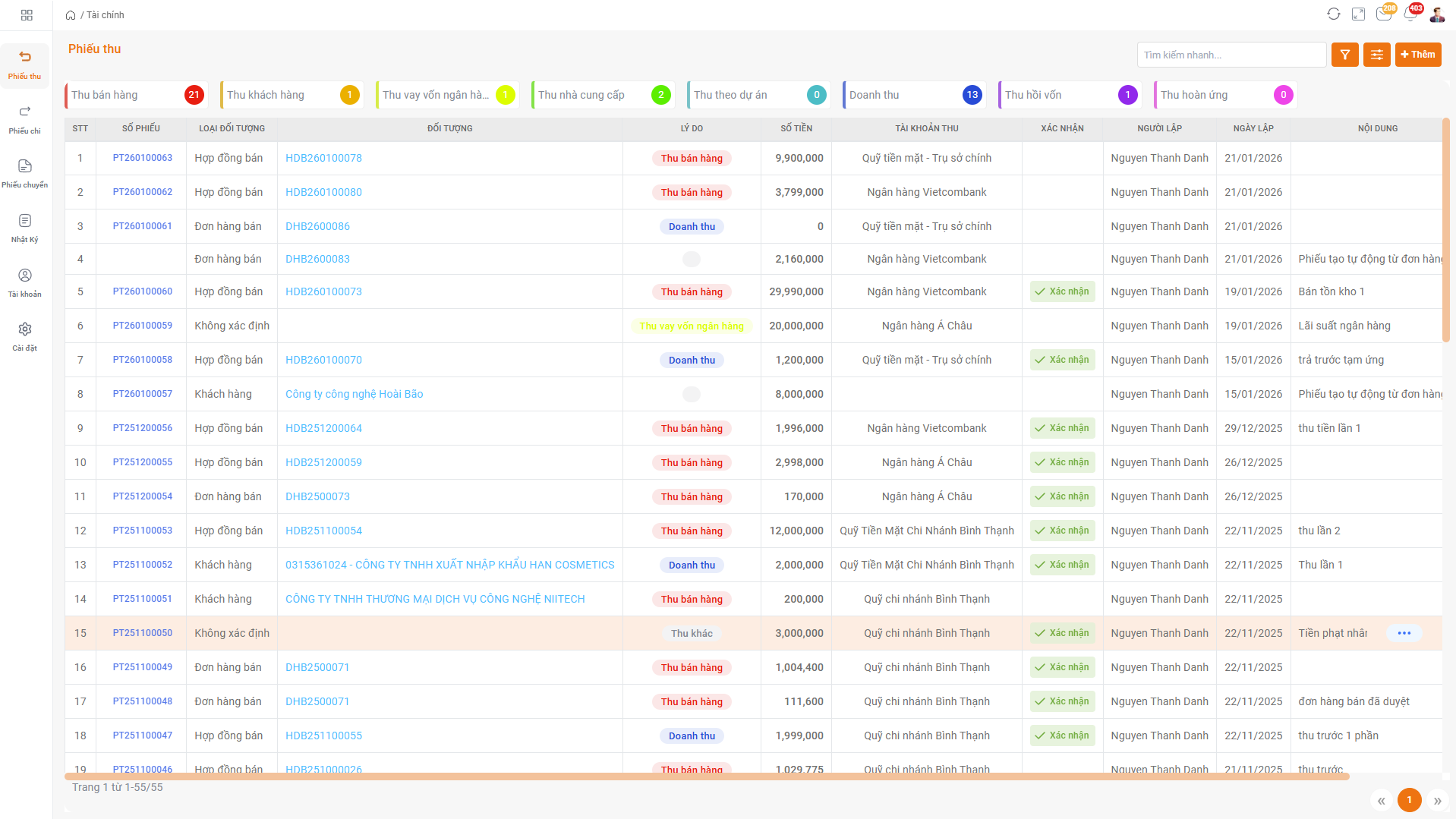 - Quản lý thu – chi – công nợ minh bạch